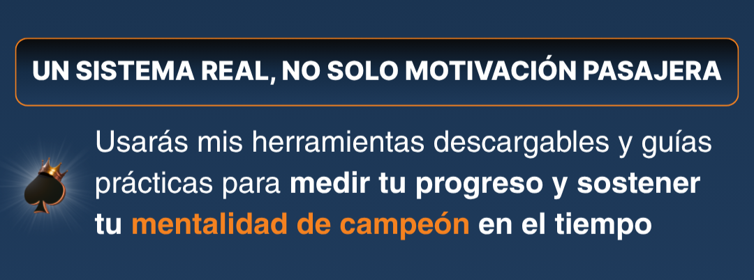 Mentalidad de Élite no es teoría motivacional, es un sistema probado en torneos reales, diseñado para que apliques en minutos lo que otros tardan años en dominar.